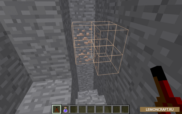 Мод Ore Dowsing добавит в игру специальный инструмент в виде палочек, который позволит вам находить ресурсы, которые находятся за блоками. Для использования данного инструмента вам нужно взять его в руку. Место, где находится руда будет подсвечено.